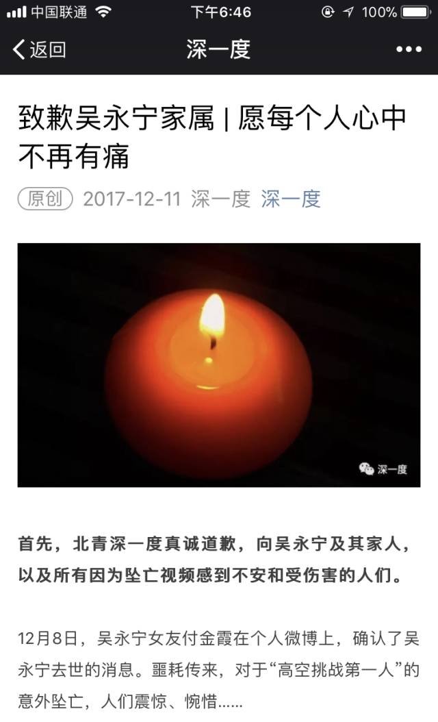 12月11日,北京青年报发文致歉吴永宁家属,以及所有因为坠亡视频感到不安和受伤害的人们。