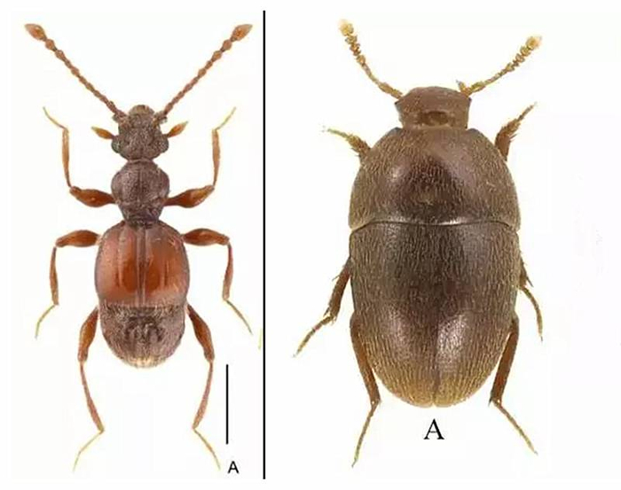 左图为西郊公园毛角蚁甲,右图为天马华冥小葬甲