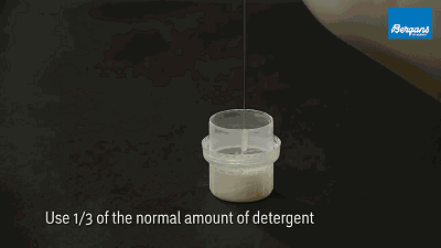 ▍贴士:通常是一脸盆水放入50毫升洗涤剂较好。
