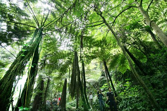 桫椤谷以珍贵的桫椤树而闻名,16000多株桫椤分布于幽谷中,形成壮美独特的桫椤群落景观。谷内还发育有四方井瀑布、钟乳石等地质景区。