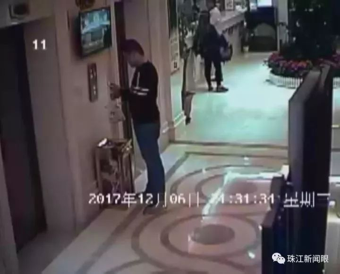酒店的监控记录了案发的部分经过。通过视频监控可以看到,无论是在酒店大堂还是电梯间,这名外卖小哥在事前都没有表现任何的异常,没想将外卖送达后突然变脸。