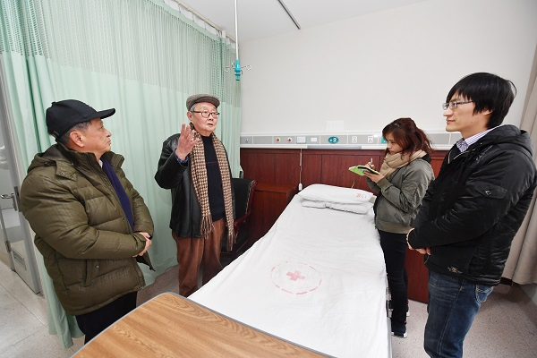 医院重逢的两位老人。新民晚报记者 徐程 摄