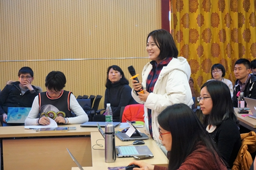 外语教师应该在科学研究、人才培养、社会服务方面作出自己的贡献,应该善于发现文化交流的重要介入点,善于借助翻译展开学术研究,担负起人才培养和文化推广的责任。许钧教授用亲身经历、生动有趣的实例阐发了上述观点,激起了现场师生的强烈共鸣和热切回应。针对同学们提出的如何处理cultural connotation、如何保持汉语翻译流畅性等问题,许钧教授耐心而又风趣地与在场同学进行深入探讨。同学们踊跃与主讲人互动,为此主持人特意延长了20分钟,仍让现场听众感到意犹未尽。工作坊在热烈、愉快的气氛中于16:50圆满结束。(文/严赋璟 刘发开 图/王年军)
