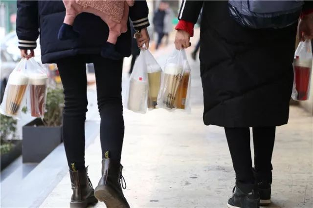 一杯温热的四季春茶搭配着果糖,如果想要更加甜蜜,茶汤上再加入奶盖。漫步在步行街,满满都是暖暖的味道。