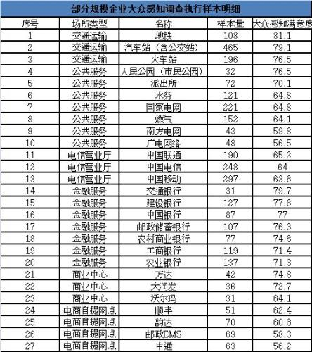 《2017年百城无障碍设施调查体验报告》中的部分规模企业大众感知调查执行样本明细。