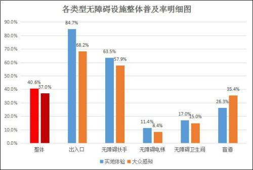 各类型无障碍设施整体普及率明细图。图片来源:中消协
