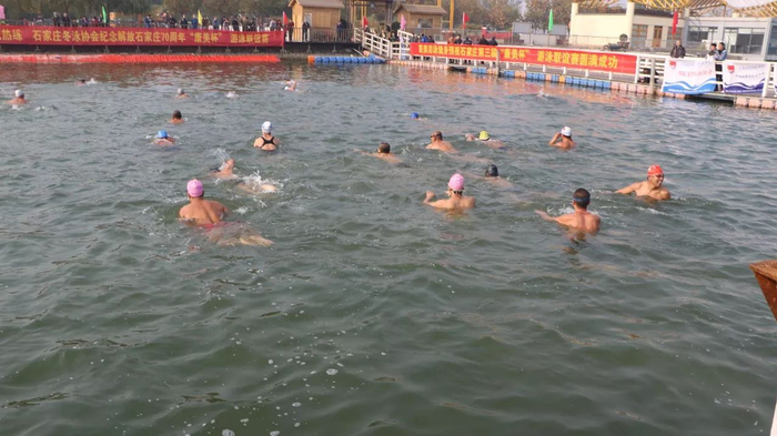 2017年7月9号康美联手社会政府性团休举办“千人横渡滹沱河”游泳赛