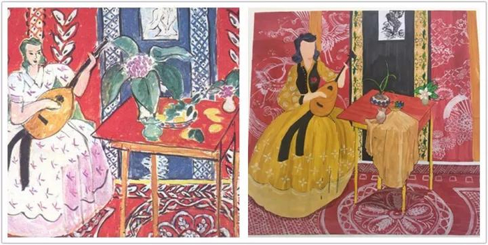 (左为法国著名画家亨利•马蒂斯原作,右为金涵同学再创作作品)
