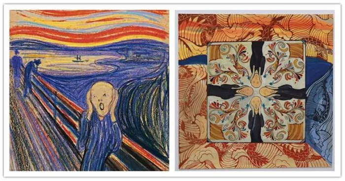 (左为挪威画家爱德华·蒙克《呐喊》原作,右为俞则宁同学再创作作品)