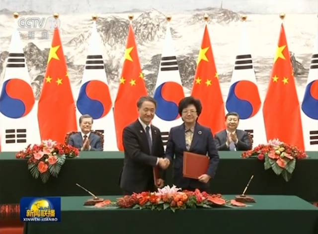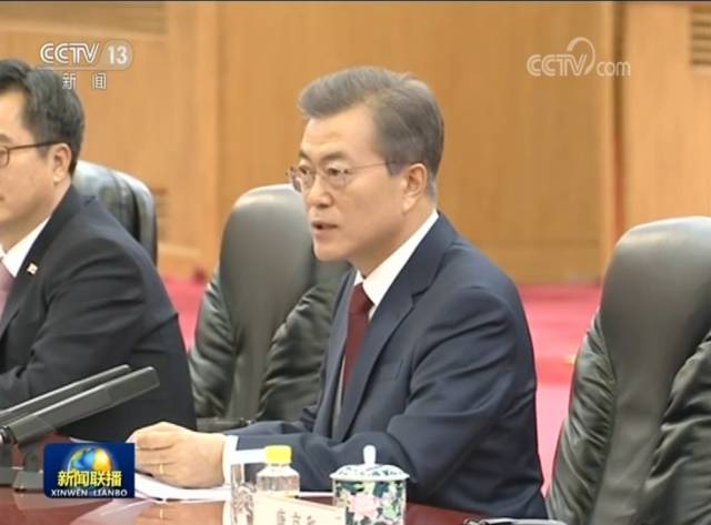 两国元首还就朝鲜半岛形势交换了看法。习近平强调,必须坚持半岛无核化目标不动摇,绝不允许半岛生战生乱,半岛问题最终要通过对话协商解决。中韩两国在维护半岛和平稳定方面有着重要的共同利益。我们愿继续同韩方就维稳防战、劝和促谈加强沟通和协调,中方也将继续支持半岛南北双方通过对话接触改善关系,推进和解合作,这有助于半岛问题的和缓和解决。文在寅强调,韩方坚定致力于通过和平手段解决半岛核问题,愿同中方一道,共同维护本地区和平稳定。