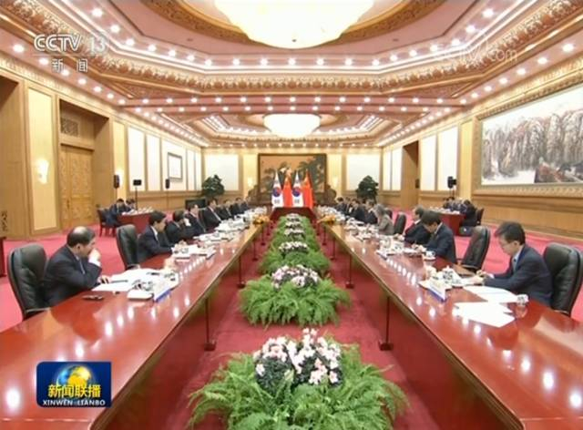 国家主席习近平14日在人民大会堂同来华进行国事访问的韩国总统文在寅举行会谈。