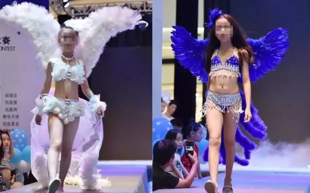 前段时间据澎湃新闻报道,8月5日,在某商场秀场上,数名女童画着浓妆,身穿比基尼,背上挂着天使翅膀等夸张的装饰物品,在镜头前自信地摆出各种pose,引得众人围观,疯狂拍照。