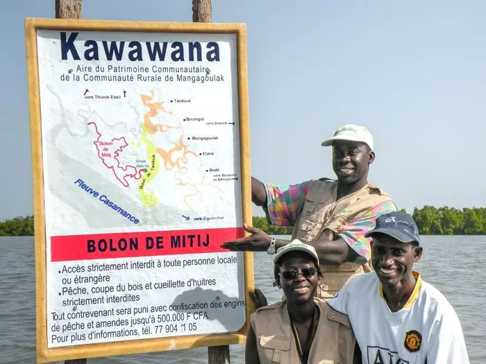 建立一个真正的基层的原住民和社区保护地在塞内加尔尚属全新的经历。这个国家有许多自称“基于社区”的倡议,却是由民间组织(NGO)构思和实施的,并由政府任命的官员“管理”。在Mangagoulack,情况则不同,渔民协会决定尝试利用“国家分权法”,这个法赋予了农村自治区管理自然资源的责任。GEF SGP为社区的会议提供资金,并通过一个小型跨学科专家团队为他们提供技术咨询。在这个团队的帮助下,渔民协会重新审视并发掘了当地的传统做法,包括一些“危险精灵”居住的“圣地”,在那里捕鱼是被禁止的。根据这一发现和其他分析结果,协会帮助其制定了原住民和社区保护地的基本分区和管理计划。这个计划包括一个禁止进入的地区(这是“危险精灵”常住的地方,渔民希望资源可以恢复),还有一个只有当地居民可以捕鱼或者采集的地区(只供本地消费和本地市场)。他们也规划了第三片区域,在这里国家规章制度将被严格执行,机动船只被禁止进入。该协会还为新的原住民和社区保护地设计了一个全面的治理架构,并结合了传统元素。比如,由受尊敬的老年妇女借助已有的信仰举行原住民和社区保护地的勘界仪式;一个由“智者”组成的议事会来帮助解决冲突;尽可能地通过协商达成一致来做决定。也包括现代国家的要素,比如,原住民和社区保护地获得了农村自治区议会、地区议会和卡萨芒斯地区区长的正式批准,他们与国家渔业局密切合作,对保护地实施了划界。最后,他们制定了一个监测计划,随着时间跟踪他们的工作成果。