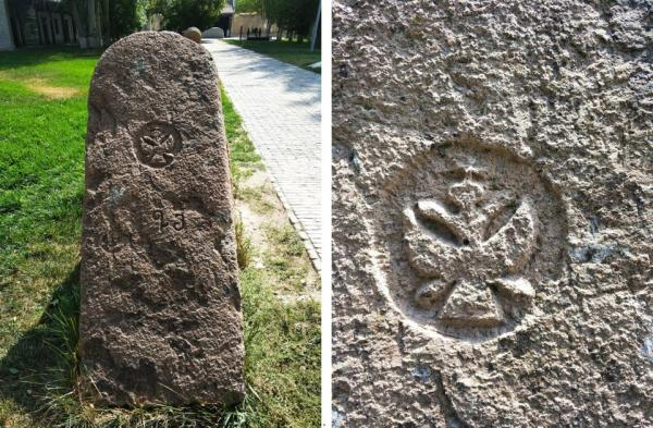 伊犁将军府院子里的石碑上能看到帝俄时期的双头鹰标志