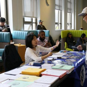 资料图:美国移民局官员在为民众提供多种语言的入籍服务。 中新社记者 刘丹 摄