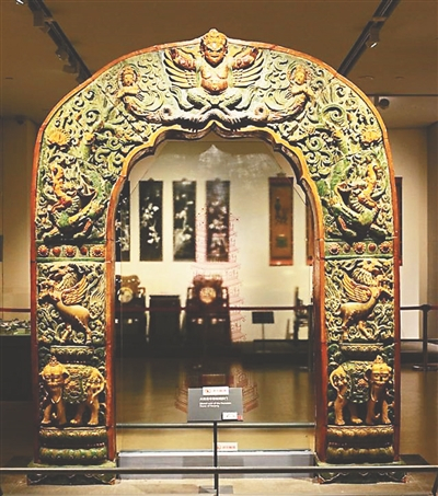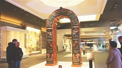 大报恩寺琉璃塔拱门,陈列在南京博物院历史馆内。这件国宝级文物这两天成了“网红”,在它面前留影的游客多了很多。