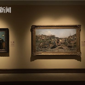 苏里科夫的史诗性巨作《女贵族莫洛佐娃》则承载着巨大的悲情感。 当时,俄国经历了一场全面的宗教改革,东正教教会出现了分裂。莫洛佐娃是此类改革的坚决反对者。画家聚焦于女贵族莫洛佐娃被带往克里姆林宫接受质问和拷打,以逼迫其屈从的瞬间场面。苏里科夫创作了无数版的习作,以完善雪橇上莫洛佐娃的人物形象和手部姿势,尤其是她高举的右手。本次展览展出的是其中最富于表现力的一版,也是人物动作的最终定格版。莫洛佐娃的脸部表情和深色外衣,垂落雪橇的衣缘和干草等,所有这一切都传递出了雪橇在行进中的动感。