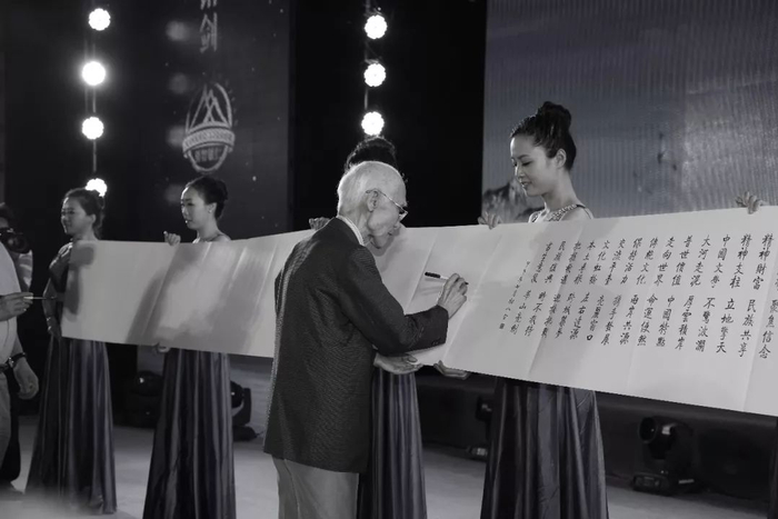 峰会现场,余光中先生领衔,贾平凹、潘耀明、袁绍珊等陕港澳台学者代表,共同签署了《两岸四地文化宣言》,作为华人文化界首份联合文化宣言,它的发表产生了深远的影响,也彰显着余老先生不远万里来到古都的厚重诚意。