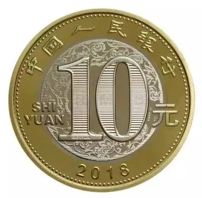 双色铜合金纪念币正面图案为“中国人民银行”、“10元”字样、汉语拼音字母“SHIYUAN”及年号“2018”,底纹衬以团花图案。
