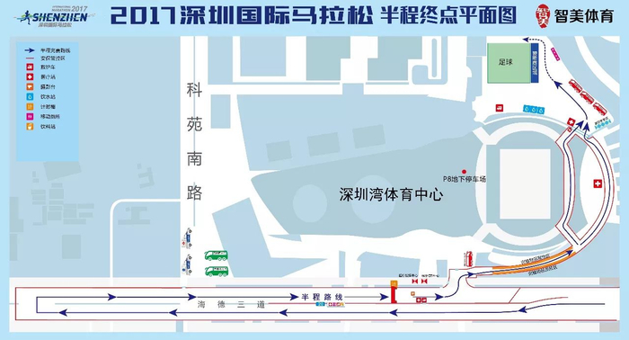需要特别注意的是,需要存包的半程马拉松选手,应在过安检之前就将存衣包寄存在福中三路上的存衣车上,根据自己的参赛号选择对应的存衣车。完赛后,到半程组比赛终点——深圳湾体育中心领取。
