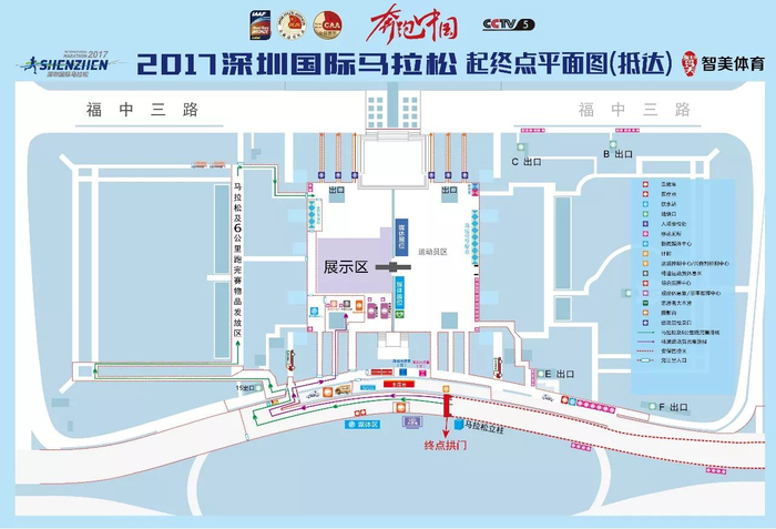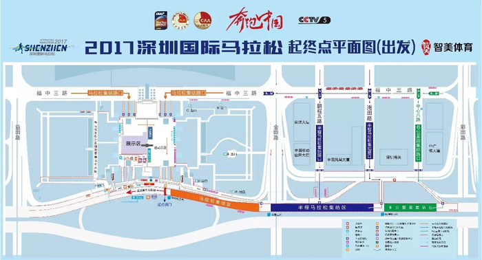 赛事起点主会场位于市民中心南广场,运动员入场安检口位于广场北侧。