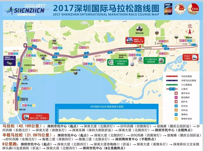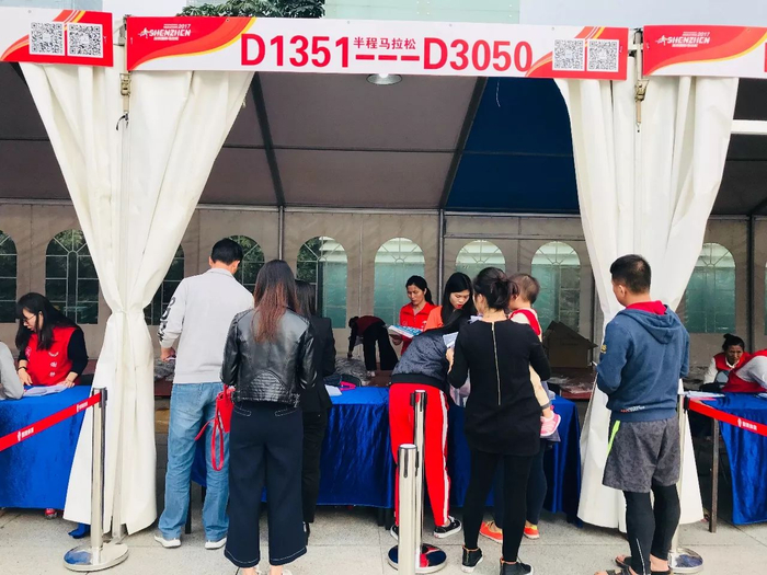 请运动员安检入场后,及时到检录处检录。检录处位于深南大道赛道,分为全程,半程,6公里三个检录区,各区域都设有醒目的提醒标志。