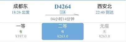成都至西安单边263元
