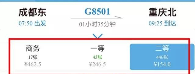 单边二等座价格154元