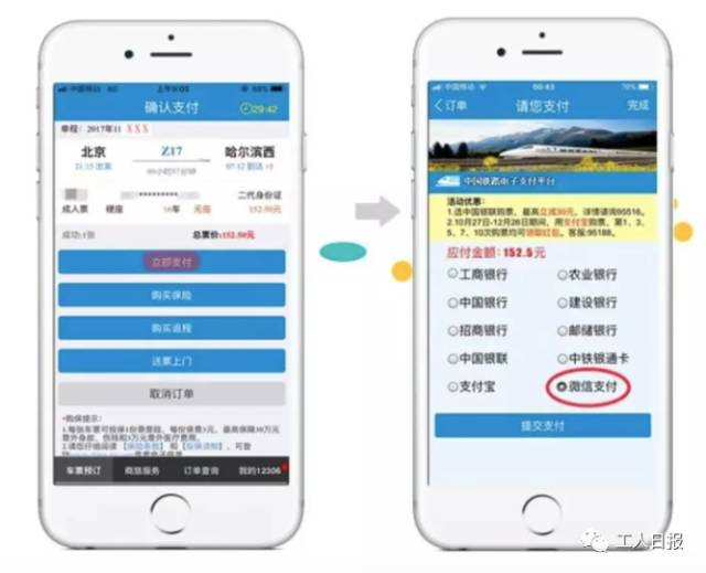 微信支付全面接入12306购票平台