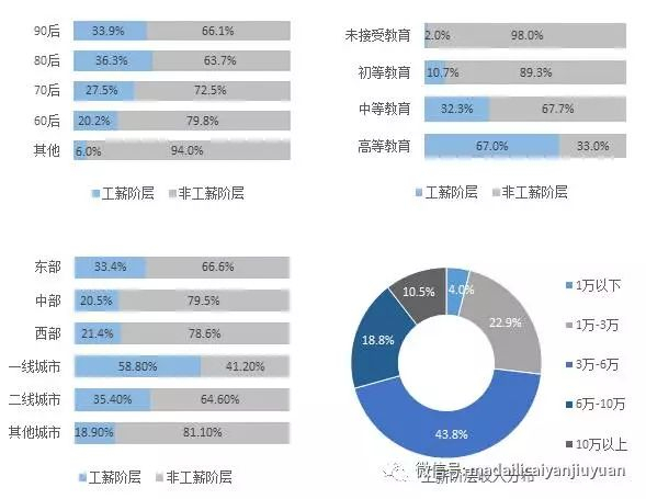 在调查中,他们将受雇于他人或企业并签订了正规劳动合同的人群,无论收入高低均定义为工薪阶层。