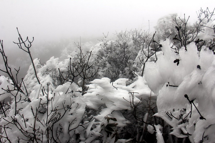 连山金子山一夜冰雪笼罩