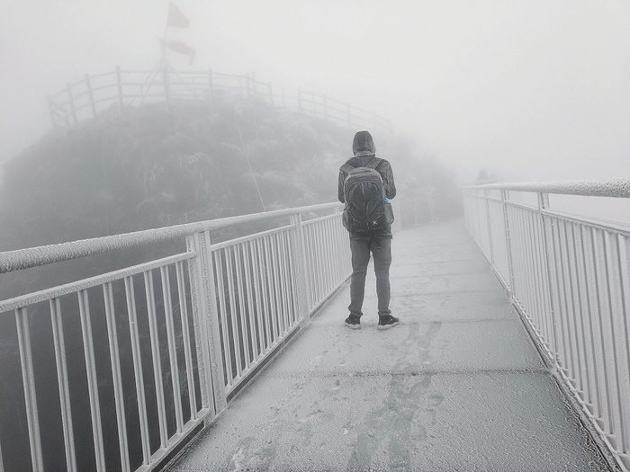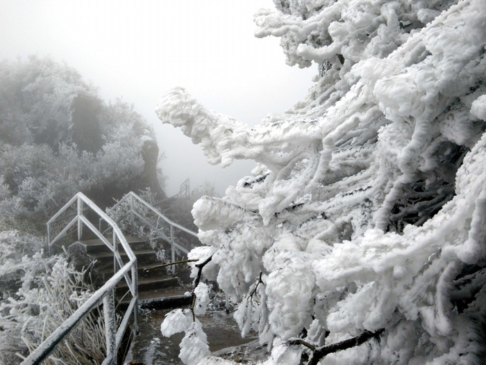 游客报料说,金子山半山以上白茫茫的一片,沿着登山径往上攀登可以看到,台阶上、竹林间、树枝上均挂满了冰凌、冰花,溪流、瀑布也垂下了长长的冰棱。雾气、雪花、冰凌构成一个冬天的童话世界,令游人在南国也能欣赏到千里冰封的北国风光。按照天气预报,金子山的冰挂奇观至少会延续三天以上。(文/ 广州日报全媒体记者曹菁 通讯员曾令华)