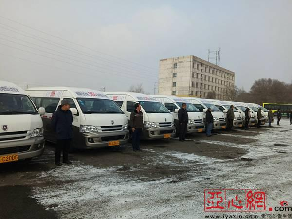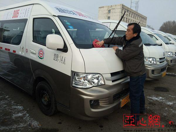 12月15日下午,在乌鲁木齐市珍宝巴士迎宾路片区公交停车场,20辆白色金杯商务车一字排开,驾驶员们正为第二天的运营做准备工作。