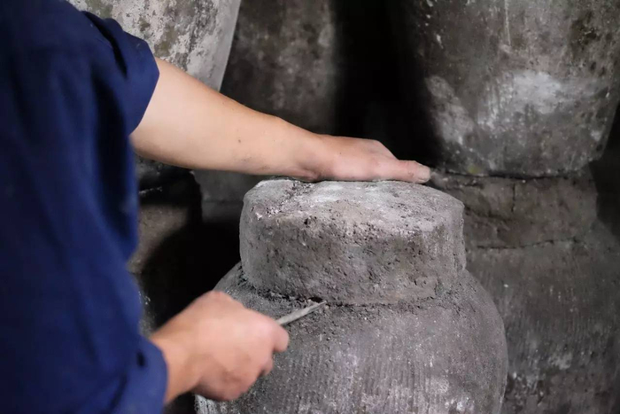 经过36道严苛的工序,然后封坛,实打实地在泥坛子里封存了五年。