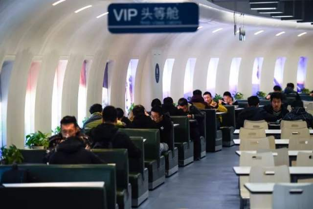 直接将飞机舱的内景搬进食堂