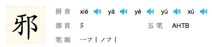 比如汉字“邪”和“缪”都有5个不同的读音: