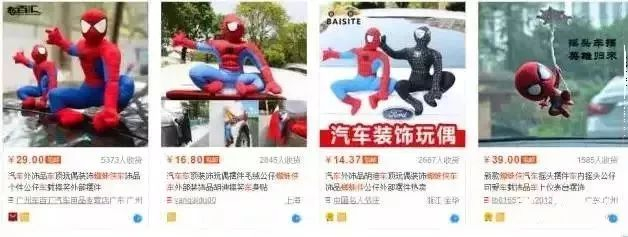 在网购平台上输入“车顶玩偶”关键词,随后出现了众多售卖该商品的店家。这些玩偶种类多样,有动漫人物,也有一些小草、水果等常见的形象,价格多在15到50元不等,不少店家的销量过万。