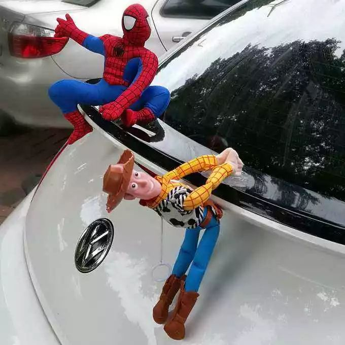 根据店家介绍,玩偶底座用的是汽车专用胶,粘在车面上较为牢固,买来可以粘贴在车顶、车尾等位置。安装的方法也很简单,把粘贴处擦干净后,将玩偶从底座上拿下,撕掉玩偶底部的透明强力胶保护膜贴在车的平面上,然后再把玩偶扣回底座上。
