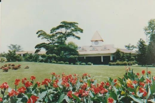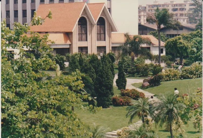 (老照片,草暖公园内,错落有致的植物和欧式建筑辉映 )
