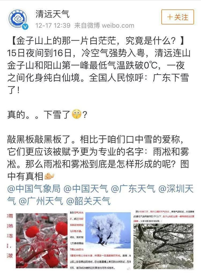 广东居然下雪了,冬天还会远吗?接下来的天气会更冷啊!!!