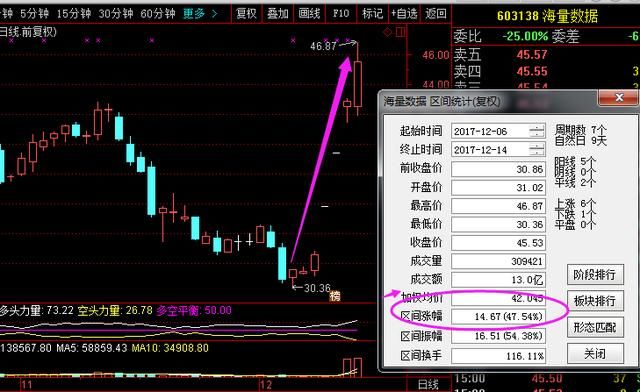 海量数据603138就是典型运用选股法选出,前期股价长期下跌,已经完全释放了风险,12/06股价创出新低,同时收出了倒锤子K线,明显的底部反转信号,本人及时发文讲解这票,截止目前短短的七个交易日,涨幅已经高达了47个点!相信笔者的粉丝朋友们都学会了,对于该股的走势本人已经做了详细分析和判断,佬粉应该都知道在哪里看到。