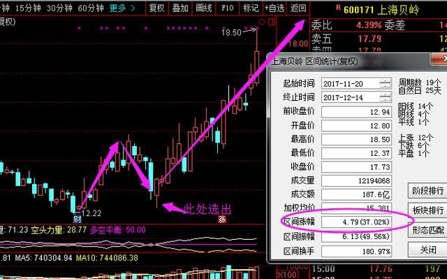 上海贝岭600171这票就是本人通过此选股法选出,股价前期下跌创出新低开始拉升,但这拉升只是试盘,11/20号股价再次回落到了支撑线,形成金针探底,本人及时发文讲解到了此股,截止目前的涨幅已经高达了37个点!这就是本人选股法的实力,我相信,只要是本人的粉丝都是可以把握到一波收益!