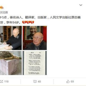 著名翻译家屠岸逝世 曾任人民文学出版社总编辑