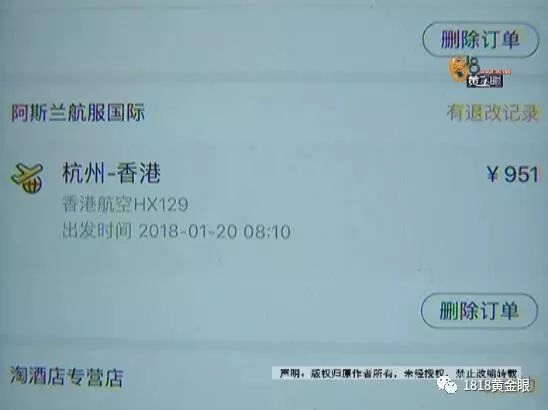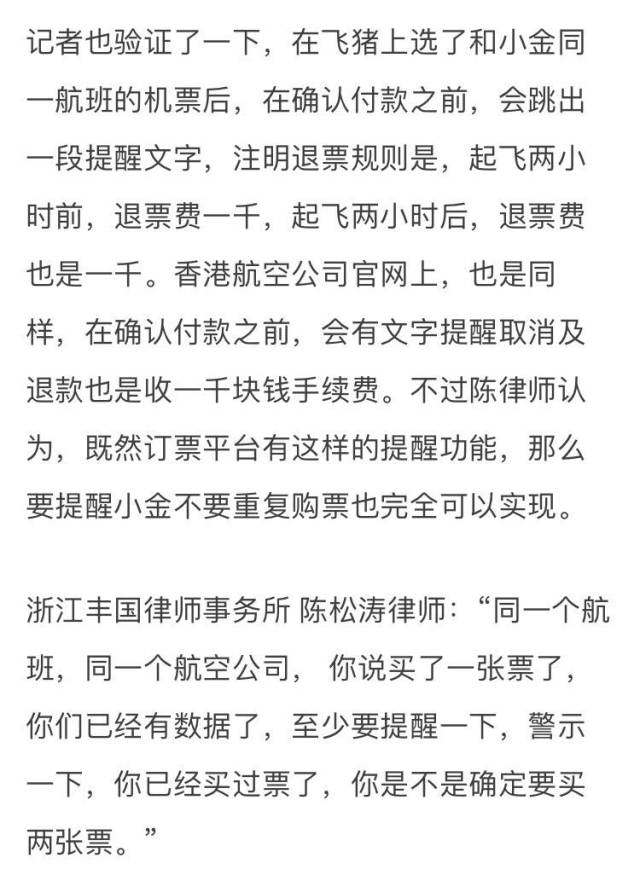 小金:“12月5号买了一班杭州到香港的飞机,当时买了,因为时间有点长,昨天的时候,我又记起来要买,我又去买了一班,杭州到香港往返的。”