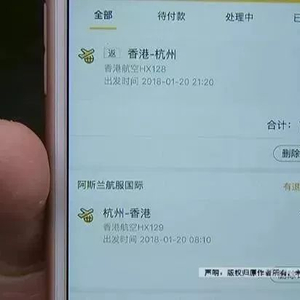 小金是在手机网络平台飞猪上订的机票,5号那天,她订了一张杭州到香港的单程机票,明年1月20号早上8点10分出发;可到了12号那天,她又订了明年1月20号杭州到香港的往返机票,也是早上8点10分出发。这样一来,等于同一个时间有两张去香港的机票,而且乘坐的都是香港航空的同一个航班。