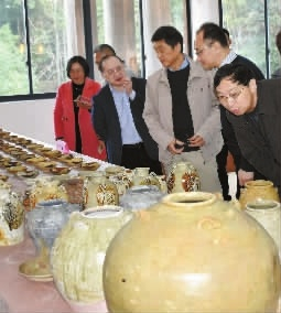 12月9日,长沙铜官窑遗址管理处,文物专家对“黑石号”沉船出水陶瓷进行鉴定。