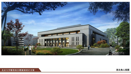 接着,餐饮综合楼的设计方——汉嘉设计集团股份有限公司设计师武跃向与会人员介绍了餐饮综合楼的设计概况。餐饮综合楼总建筑面积34,602平方米,其中地上建筑面积为17,280平方米,预计楼内座位数约为4,500个、楼附近能停放约600辆自行车。餐饮综合楼目前的设计方案是根据国家批准的有关卫生、消防等规范和标注,以及北京市城市规划、文物保护和食品卫生监督机构的要求,结合餐饮专业化需求和餐饮经营方式等要素,同时,在征集师生意见、建议基础上,经反复修改初步形成的。武跃从设计要点、平面布局、就餐流线等多个角度让与会师生们了解到该楼的设计目标是最大限度地满足师生就餐需求、缓解就餐压力,尽可能提供安全、便捷、舒适、优美的就餐环境。