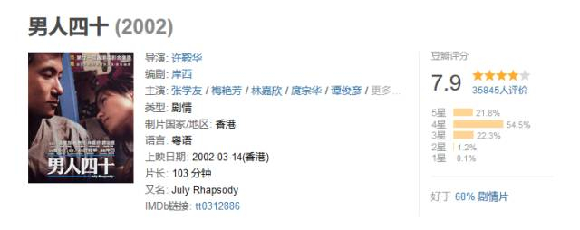 由许鞍华执导,张学友、梅艳芳、林嘉欣主演的电影《男人四十》。