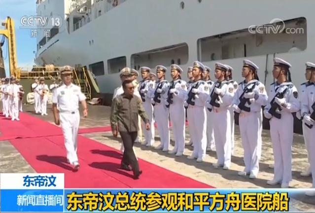 上午10点,东帝汶总统卢奥洛抵达帝力港码头,在中方人员陪同下,登上和平方舟医院船。卢奥洛了解了东帝汶民众就诊情况,并看望慰问了手术留船住院的东帝汶患者,得知一位老兵在这里接受手术并取出了留存体内的弹片,他感到非常欣慰,称医院船为东帝汶元勋老兵作出了突出贡献。