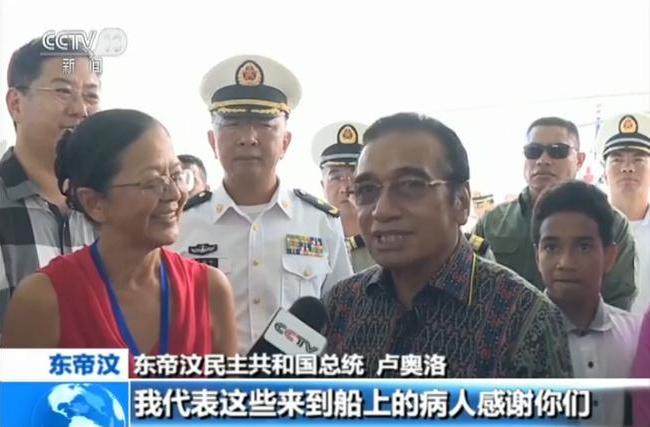 东帝汶民主共和国总统 卢奥洛:本人非常感谢,我代表这些来到船上的病人感谢你们。我相信中国的和平方舟能够在未来继续帮助需要帮助的人,希望和平方舟医院船再来东帝汶。
